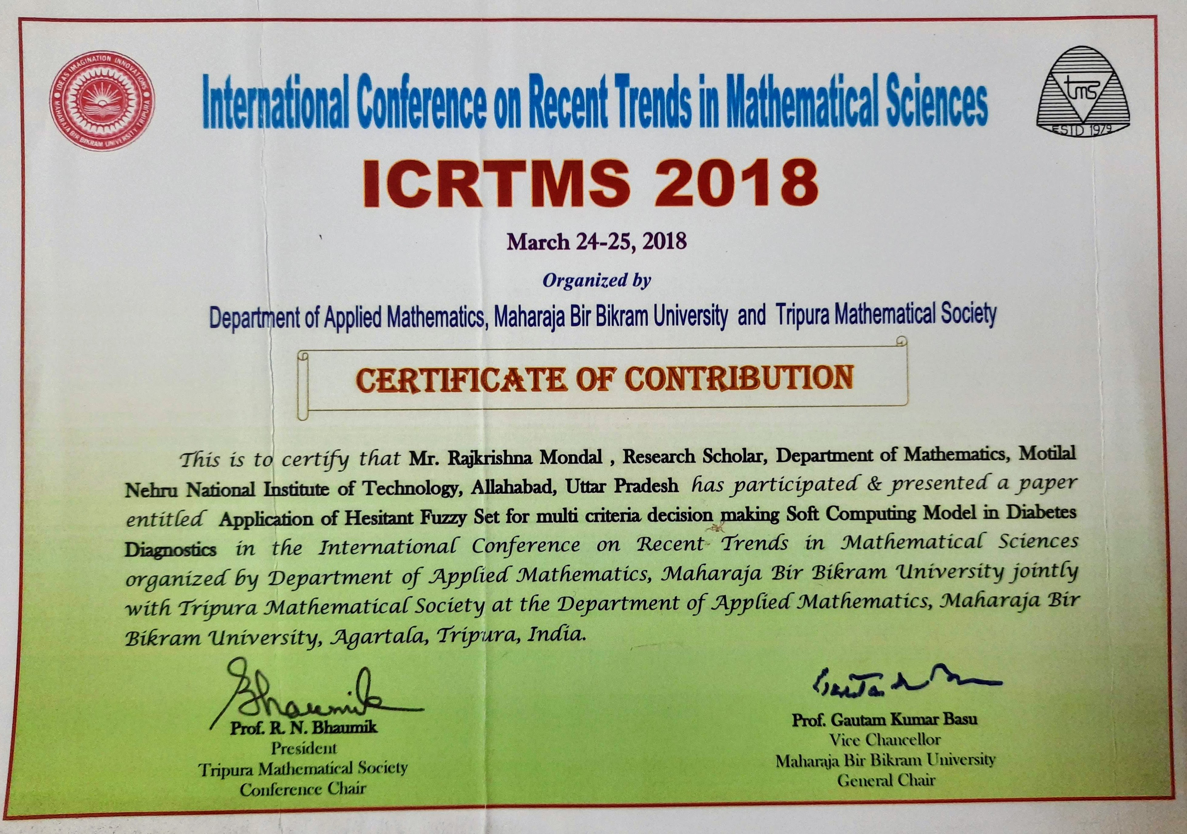 International Conference on Recent Trends in Mathematical Sciences (ICRTMS-2018)